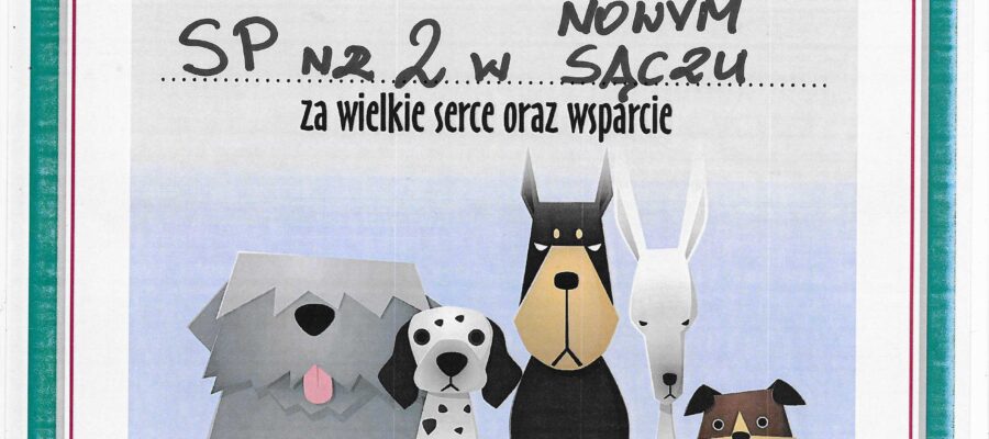 Podziękowanie za wielkie serce oraz wsparcie dla całej społeczności szkolnej Szkoły Podstawowej nr 2 za udział w zbiórce potrzebnych rzeczy